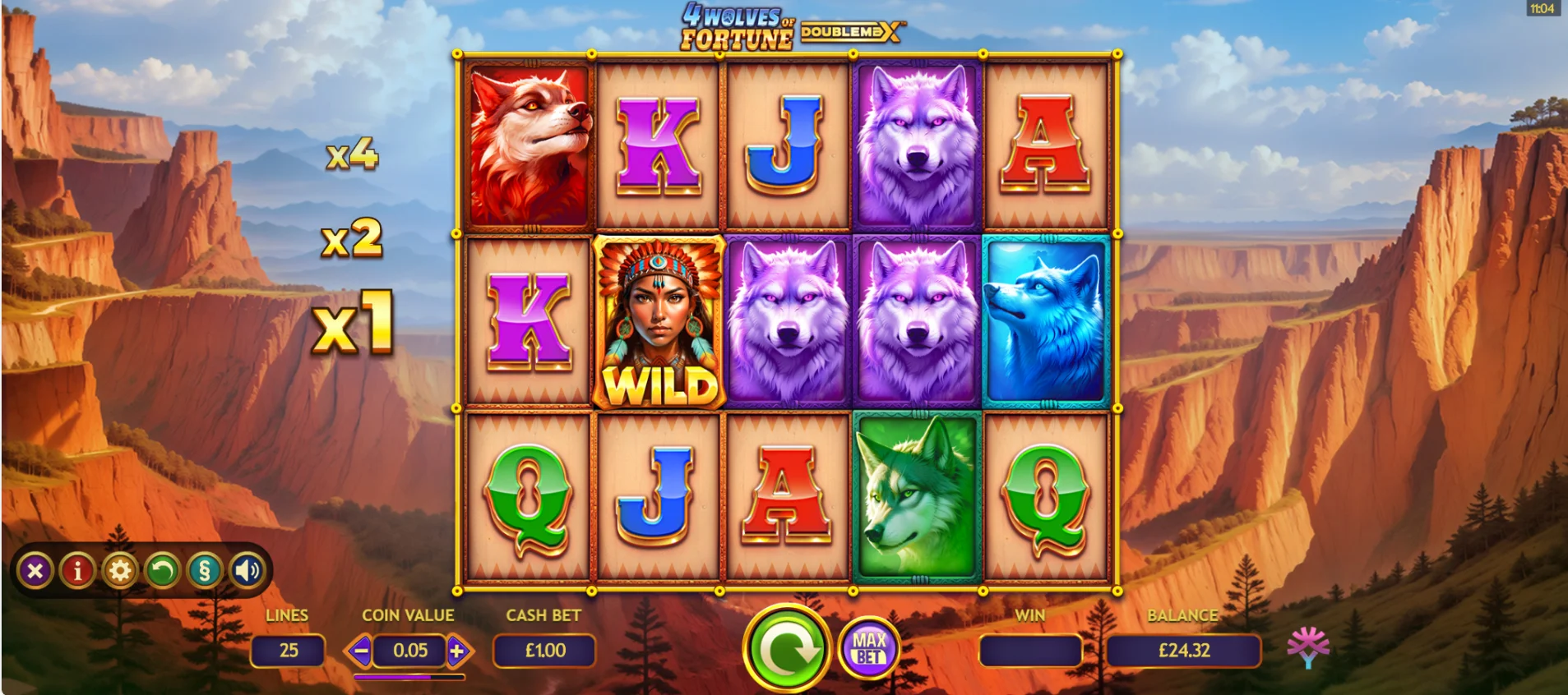 Set in the American wilderness, 4 Wolves of Fortune is an online slot game released by Yggdrasil in 2025 that showcases high-quality scenery and wild wolves throughout the play grid, each displayed in different colours. Mechanically, 4 Wolves of Fortune also includes cascading reels, multipliers and Wilds, making this one of the most impressive titles from Yggdrasil Gaming.