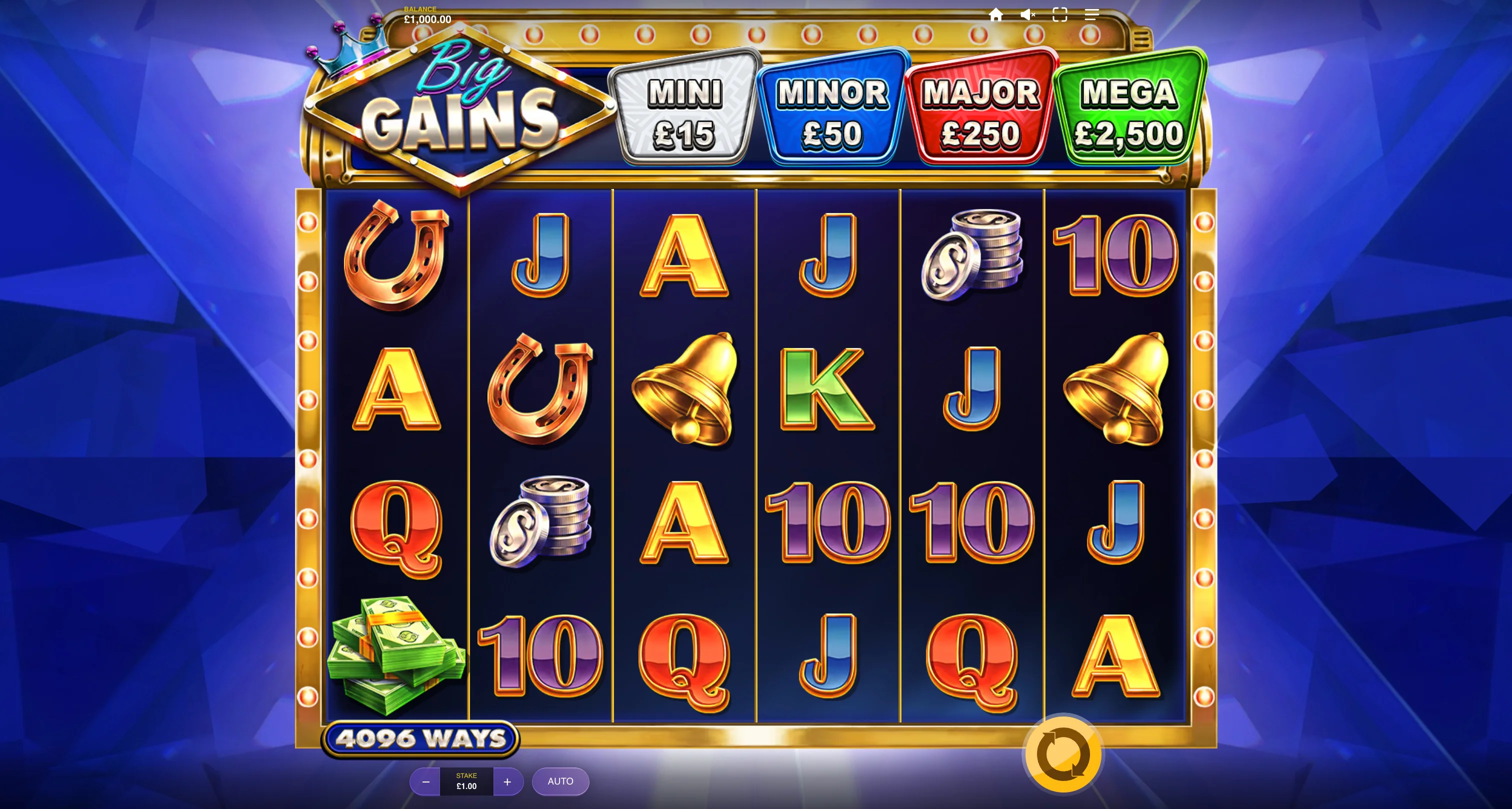 In the Big Gains slot game, the maximum potential win that can be unlocked is 39,375x the stake value.