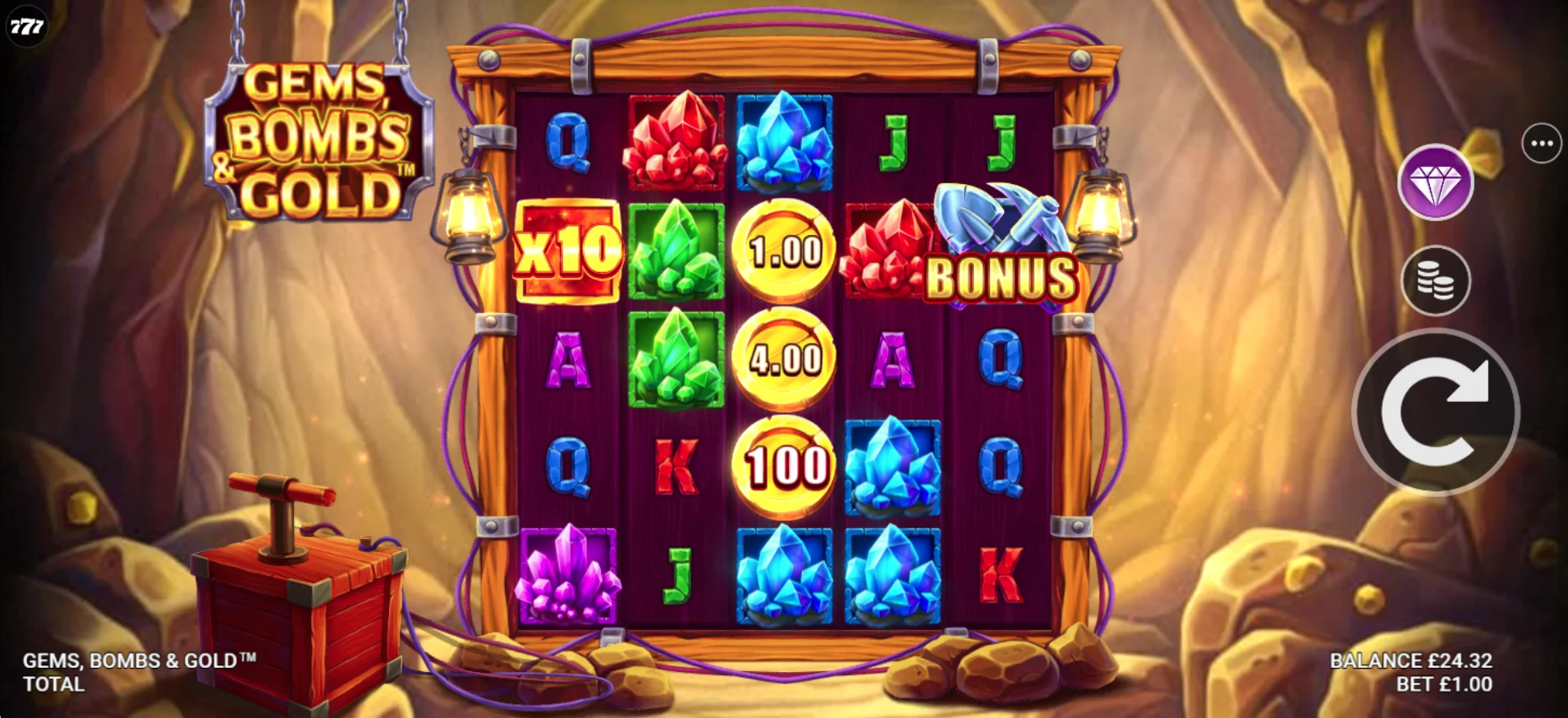 Gems, Bombs & Gold features an array of bonus mechanics, each affecting the gameplay in different ways. From multipliers to free spins, there is plenty to witness in Gems, Bombs & Gold.