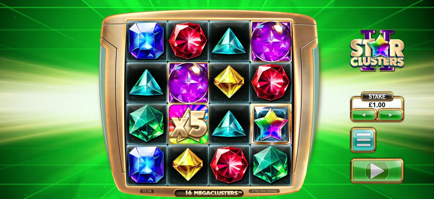 Released by Big Time Gaming in 2025, Star Clusters 2 is an innovative and interesting slot game that incorporates bonus mechanics. In the same way as other online slots, the gameplay takes place across a 4x4 playgrid, with high-quality graphics and visually appealing gems being seen throughout the reels. Also included in Star Clusters 2 are bonuses such as megaclusters, Scatter symbols, and Wild symbols.
