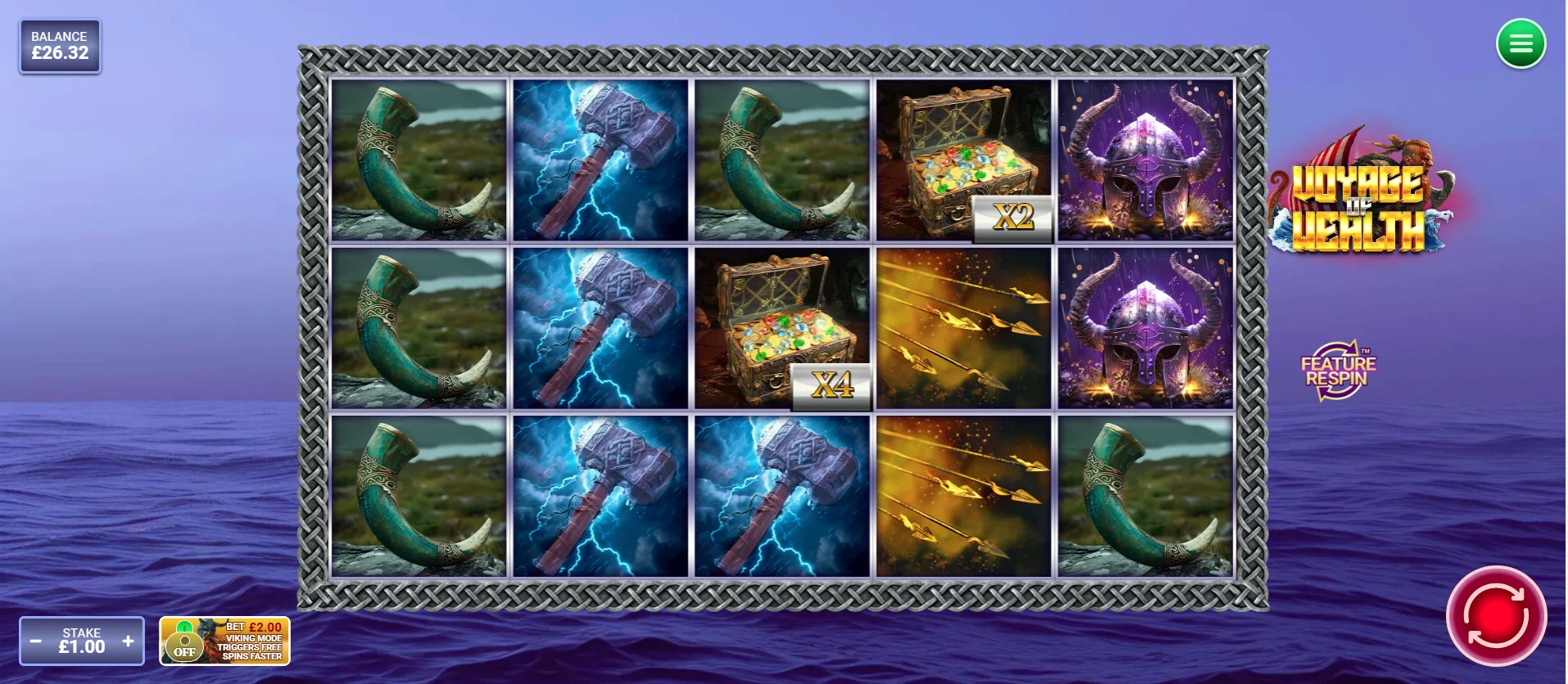Viking Hoard Feature – The Treasure symbols in the Voyage of Wealth slot could potentially land with multipliers of 1x, 2x, 3x, 4x, 5x, 10x, 15x, 20x, 25x, 30x, 40x or 50x attached to them. If these land in the same spin as any Collection symbols, this could see their multipliers collected by this symbol.