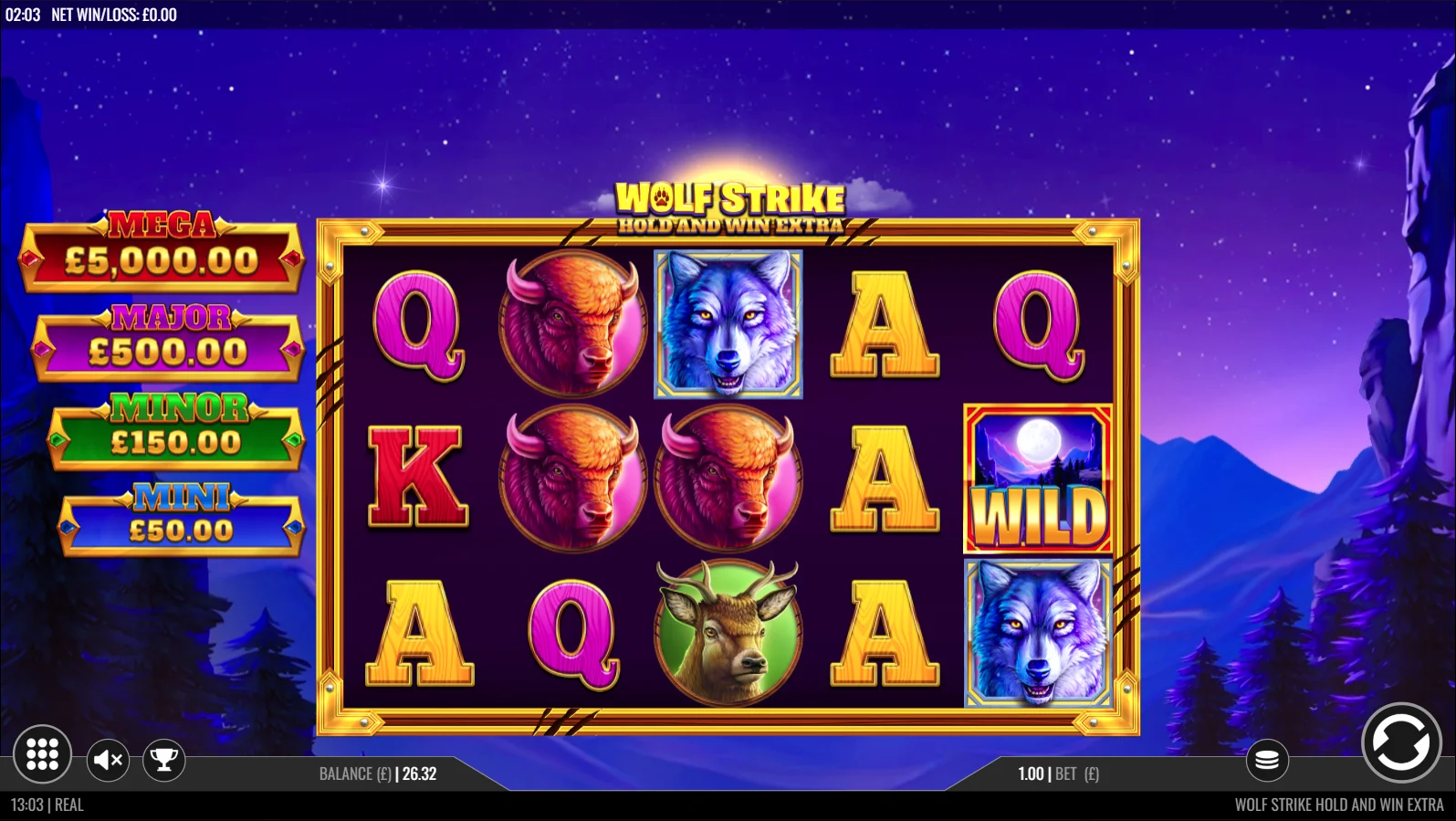 Playing the Wolf Strike Hold & Win Extra slot is simple, starting with players selecting a bet value they are comfortable with via the stake selector menu. Once a stake has been selected, players can spin the reels, aiming to land matching symbol combinations or trigger bonus mechanics in play.